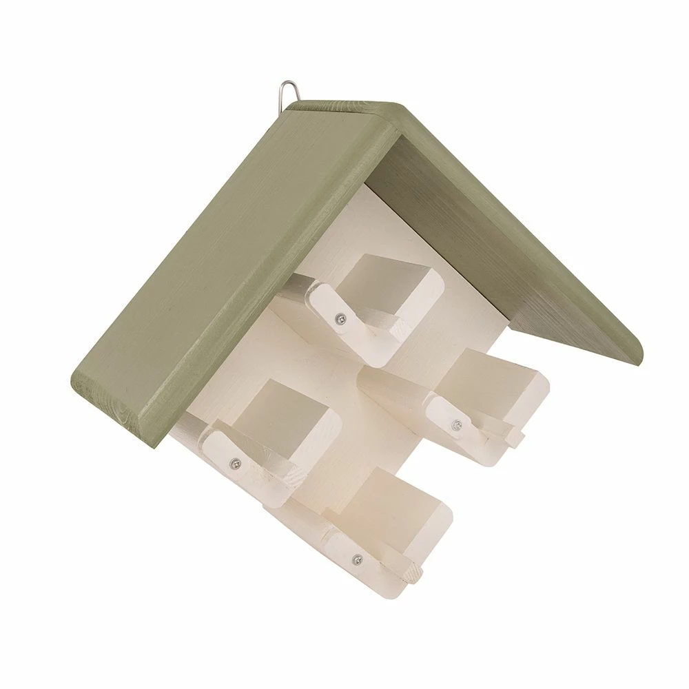 Dank des Hakens an der Rückseite lässt sich dieser Erdnussbutterglas-Halter problemlos an einer Mauer, einem Baum oder einem Lattenzaun aufhängen. Das Befüllen ist ebenfalls einfach: Den Deckel des Erdnussbutterglases abschrauben und das Glas unter das Dach in den Halter schieben. Wenn Sie es mit dem kleinen holzriegel sichern, kann das Glas nicht herausfallen oder einfach von Krähen oder Elstern mitgenommen werden.
