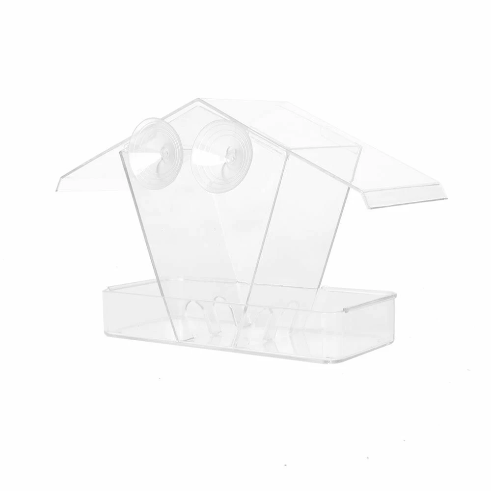 Wie der Name schon aussagt, handelt es sich hierbei um ein Futtersystem für die Fensterscheibe. Dieses Fenster-Futterhaus, hergestellt aus Plexiglas (Polycarbonat-Kunststoff), ist mit zwei stabilen Saugnäpfen ausgestattet zur praktischen Aufhängung an die Fensterscheibe. Die durchsichtige Konstruktion ermöglicht den totalen Einblick ins Futterhaus, so lassen sich die Vögel von allen Seiten beobachten. Bodenlöcher zur Abwässerung und ein Dachvorsprung sorgen dafür, dass das Futter trocken bleibt.