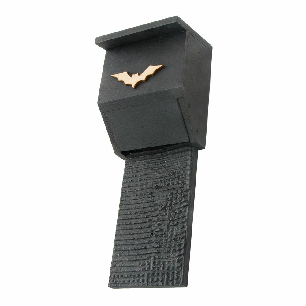 Der Fledermauskasten Coucy hat einen angepassten Eingang, der mit einer Reliefoberfläche ausgestattet ist, wodurch den Fledermäusen einen festen Halt beim Hineinklettern geboten wird. Der schwarze Außenanstrich gewährleistet Schutz vor Nässe und sorgt für ein angemessenes Klima im Kasten.