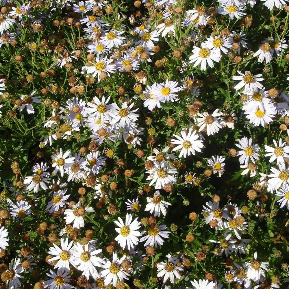 Diese Garten-Schönaster blüht mit lichtblauen Blüten etwas später im Sommer. Die kugelförmigen Sträucher sind ein echter Gewinn in jedem Garten. Die Blüten locken Schmetterlinge und andere Insekten an.