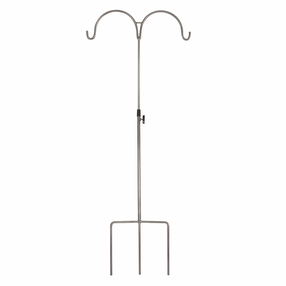Dieser doppelte Hirtenstab aus Metall bietet Platz zum Aufhängen von Futtersäulen, Futterhäusern oder Wasserschalen. Der Dreispitz gewährleistet einen sicheren Stand im Boden. Der Hirtenstab ist ausziehbar, sodass sich die Länge zwischen 1,25 m und 1,50 m variieren lässt.
