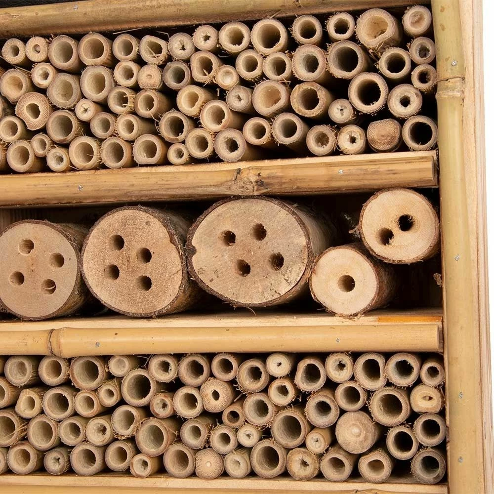 Dieses Bienenhotel wurde speziell entwickelt, um verschiedenen Insektenarten Unterschlupf zu bieten – ein Muss in jedem tierfreundlichen Garten. In den Tannenzapfen und losen Holzstückchen werden sich vor allem kleine Spinnen und Insekten wie Marienkäfer und Ohrwürmer einnisten. Die unterschiedlichen Röhrchen bieten Solitärbienen einen idealen Platz für die Eiablage.