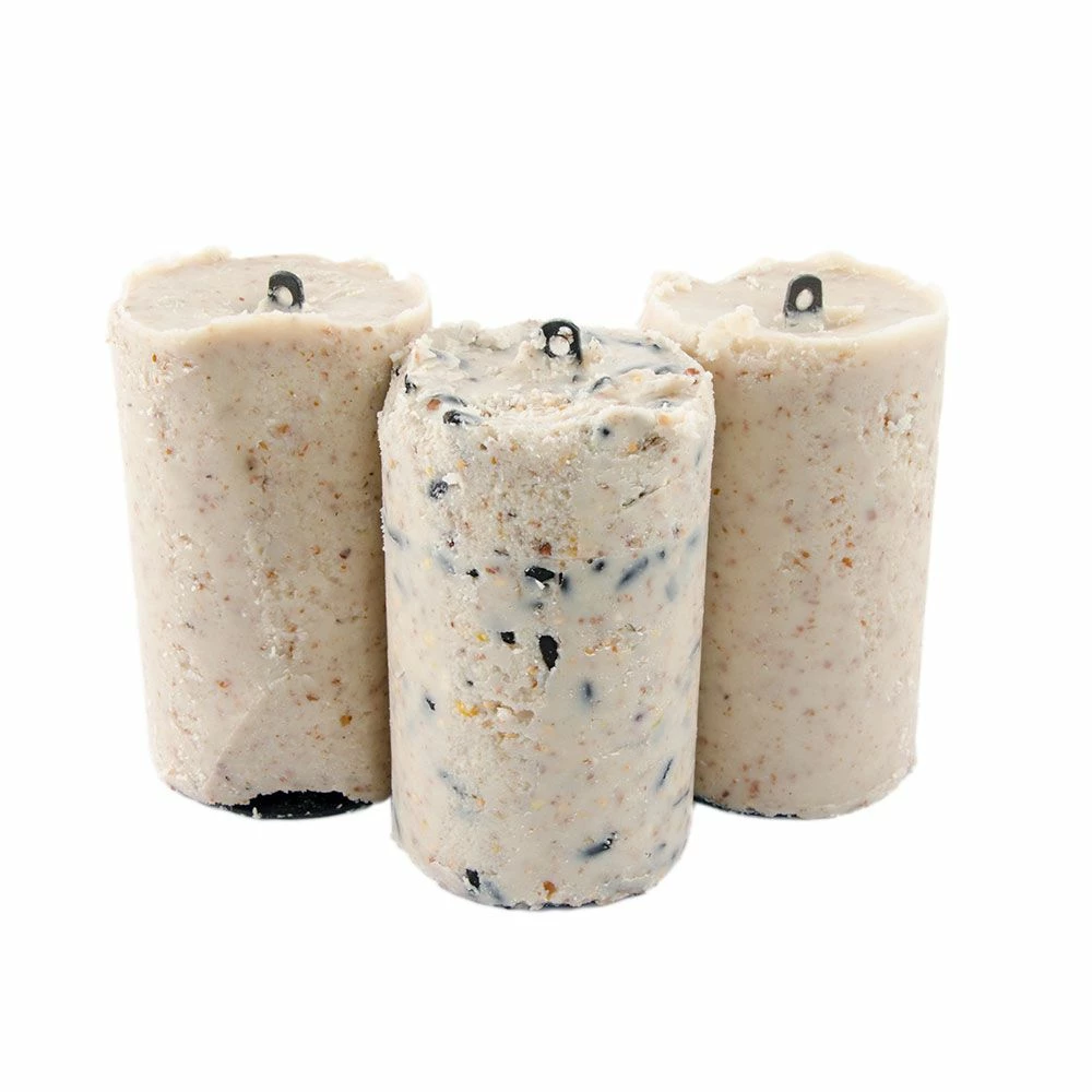 | Zutaten | je nach Sorte Erdnussmehl, Talg, schwarze Sonnenblumenkerne, gestreifte Sonnenblumenkerne, gelbe Hirse, gehackte Erdnüsse, Haferflocken, getrocknete Insekten, Garnelen, kleine Krabben, Muschelkalk, Aktivkohle |