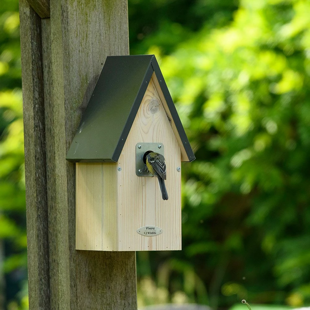 An der Seite kann der Nistkasten geöffnet werden, um ihn nach der Brutsaison zu reinigen. Tun Sie dies im Oktober. Dann können Sie sicher sein, dass kein Vogel mehr darin brütet. Außerdem stören Sie noch keine Vögel, die an kalten Wintertagen Unterschlupf im Nistkasten suchen.