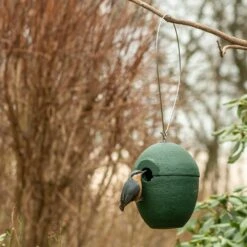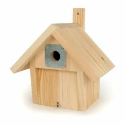 Schrauben und Nägel zum Aufhängen sind im Lieferumfang enthalten. Die Einflugöffnung des Nistkastens sollte nicht im Südwesten liegen und der Kasten sollte nicht den ganzen Tag in der Sonne hängen. Legen Sie das Kasteninnere mit einer kleinen Schicht Nistmaterial aus.