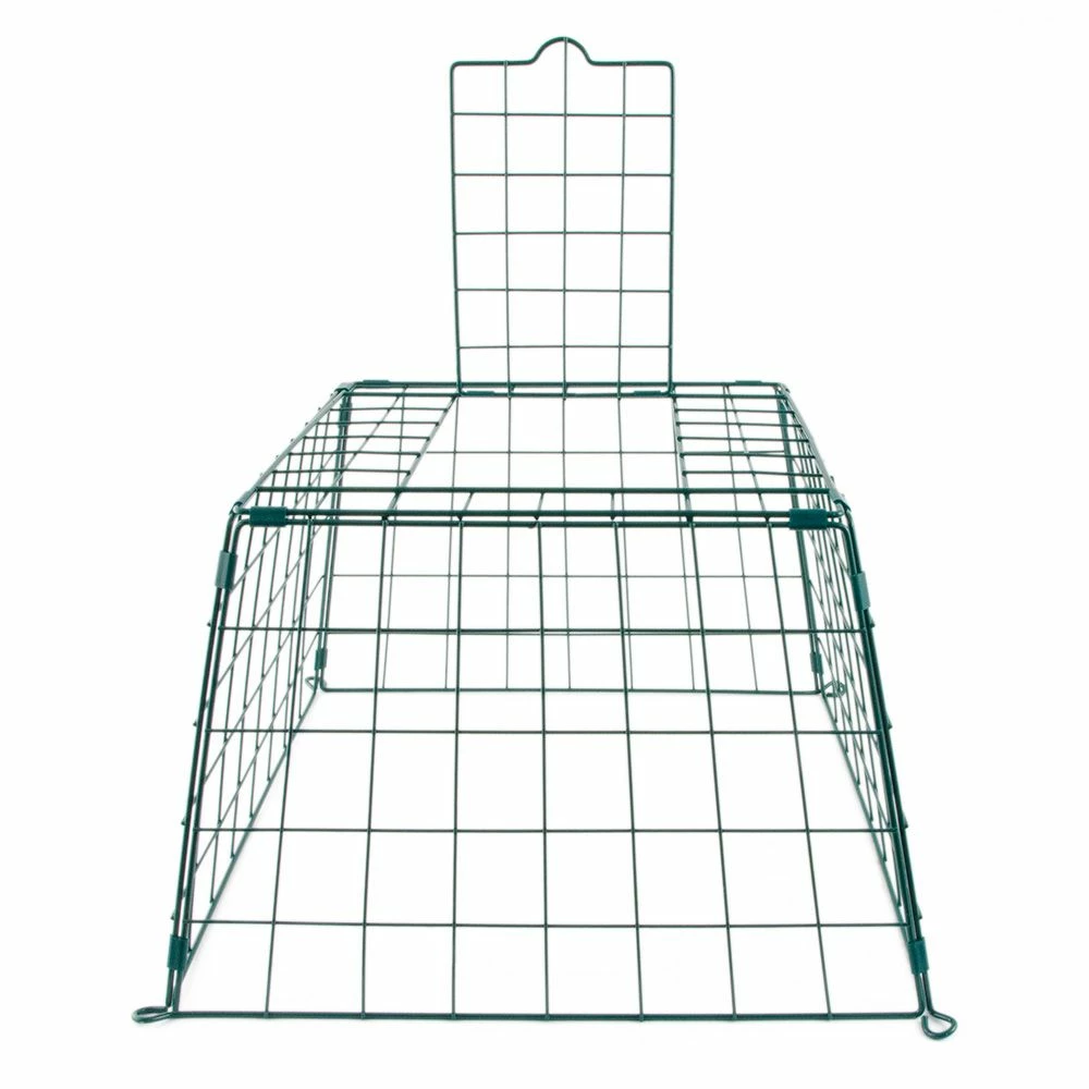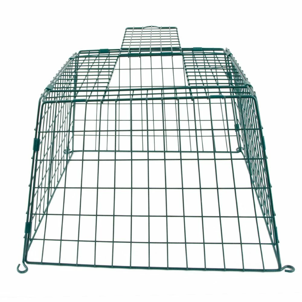 Schützen Sie kleine Bodenfresser mit dem Schutzkäfig „Maxi“. Einfach diesen pulverbeschichteten Schutzkäfig aus Metall über den Futtertisch stellen, und die Vögel können in aller Ruhe fressen: Weder Katzen noch andere große Störenfriede haben eine Chance. Die Durchflugöffnungen sind 6 cm breit und 6,5 cm groß – so passen Amseln noch durch die Öffnungen, Katzen und die meisten Rabenvögel jedoch nicht. (Hinweis: Es kann jedoch vorkommen, dass kleinere Rabenvögel hindurchpassen; soll dies vermieden werden, empfehlen wir den Schutzkäfig „Midi“. ).